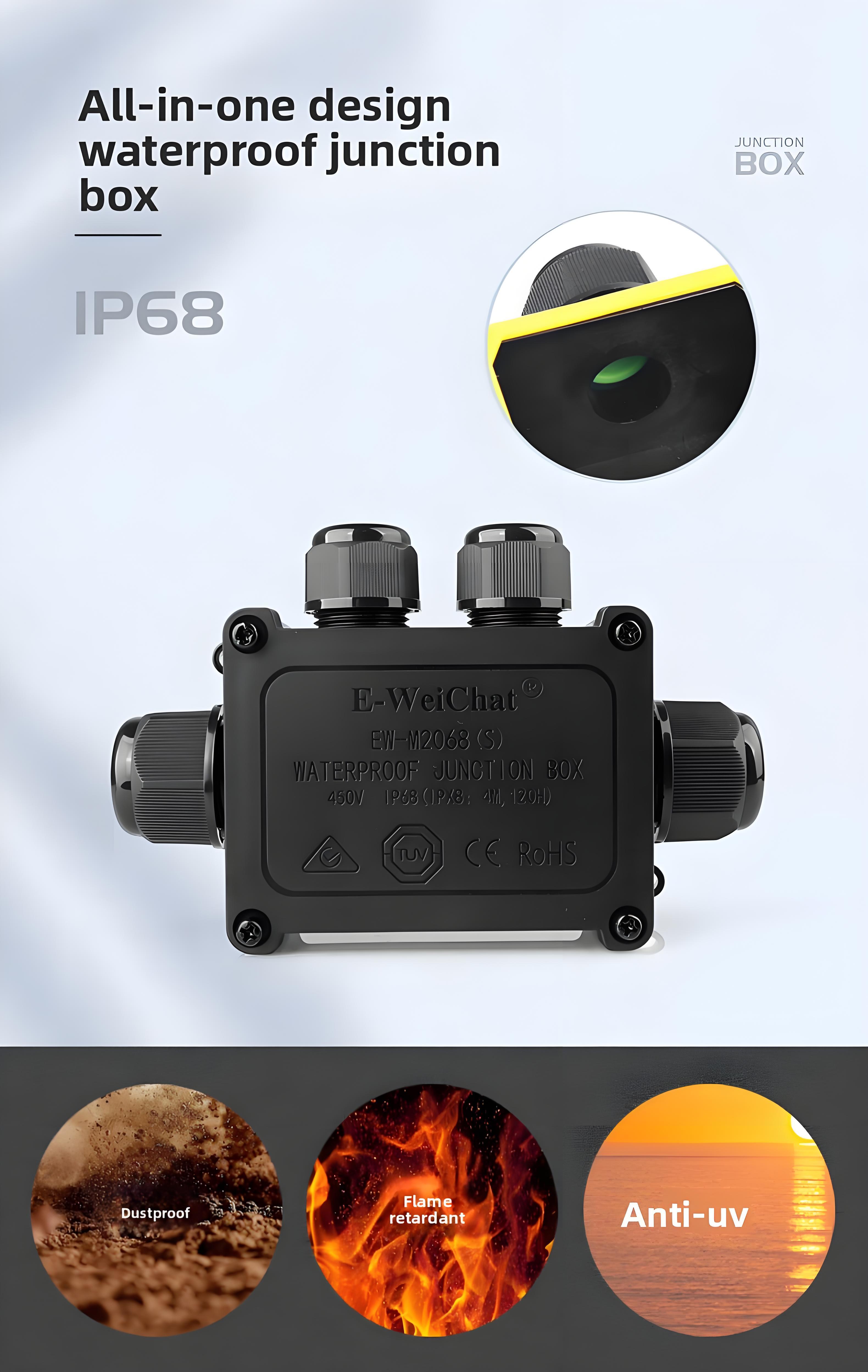 Waterproof Junction Box IP68 - 1-in-3-Out Cable Gland Through-Type for Data Power Lines Images |